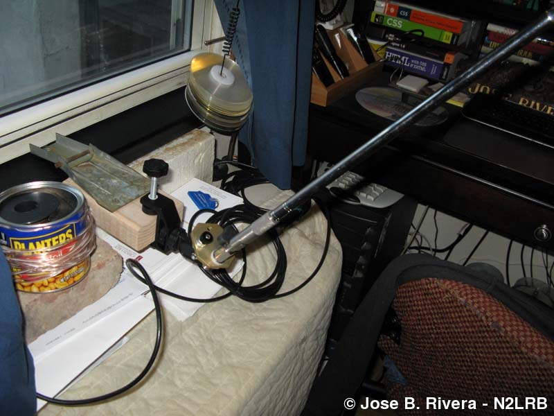 Here is a close up of the base of the Buddistick Antenna. The Buddistick consist of the Vertical Antenna Clamp, Mounting Kit and any number of Buddiarms and or Buddiwhip Antennas. You also see my "Artificial Window Sill" which I use to attach my antenna mounts. Photo taken on Thu, October 21, 2010