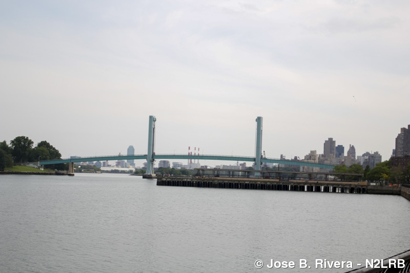 A look south toward the green Ward's Island Foot Bridge which is near East 103rd Street in Manhattan. Photo taken on Fri, July 03, 2015