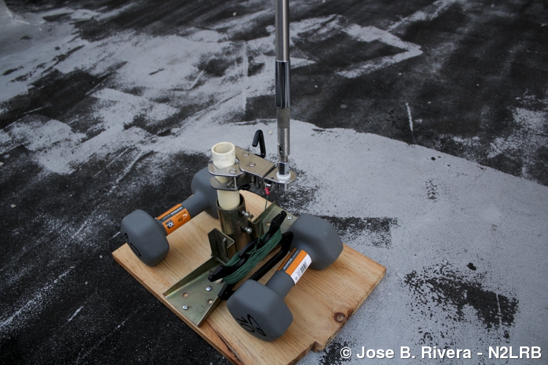This is the same home made roof mount from my previous photo. Here it is on the floor of my apartment building roof. It worked. Photo taken on Mon, October 03, 2016