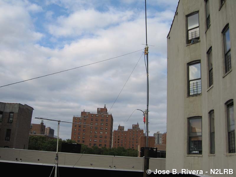 My 2 meter beam on the left and on the right and on the mast are my 2 meter/70cm vertical, 20 meter dipole and 40 meter hamstick. This photo was taken on September 3, 2006. Photo taken on Sun, September 03, 2006