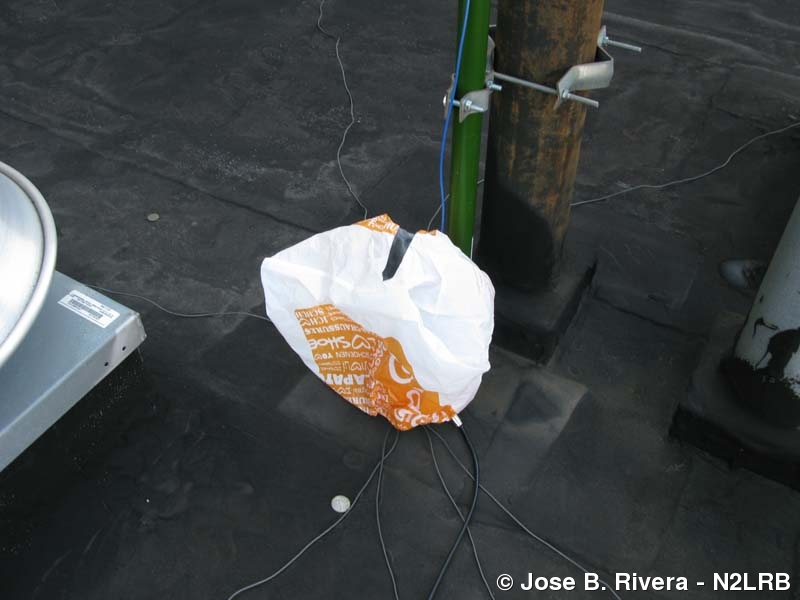I added a plastic bag over the coke bottle to ensure that the Balun Design 4-1 Unun does not get wet. Photo taken on Thu, April 14, 2011