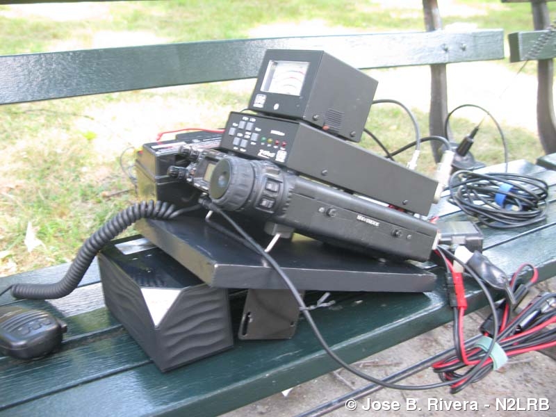 A close up of the Auvio Speaker, Yaesu FT-857D, LDG Z-11 Pro II Tuner and LDG Meter. You can also see my MFJ Dual Band 2M/440 CM FM Antenna to the right and in back of the equipment. Photo taken on Sat, August 10, 2013