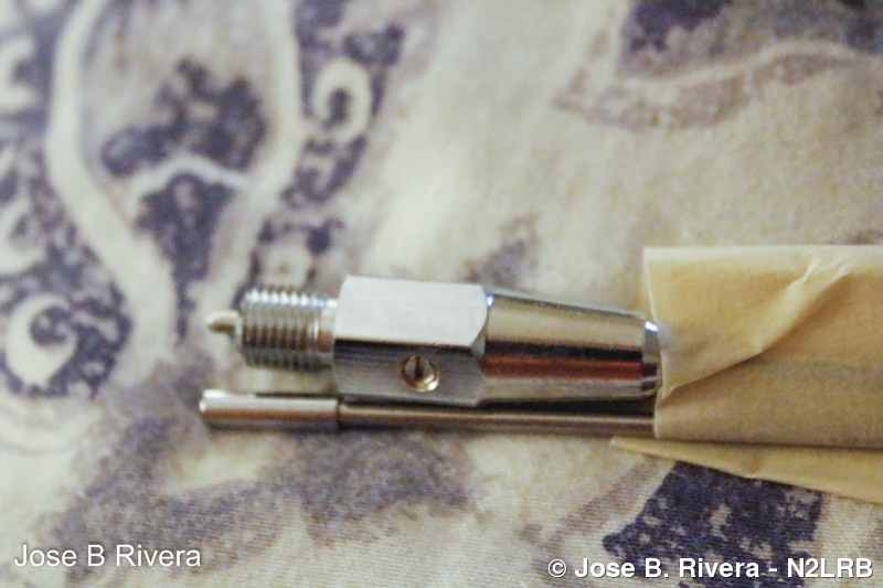 An extreme closeup of my two 2 meter stainless steel whips. Since you are looking at the tip top of one and the bottom of the other you can now see what's at each end. I purchased these on Ebay they were $9.95 each. Photo taken on Wed, January 28, 2015