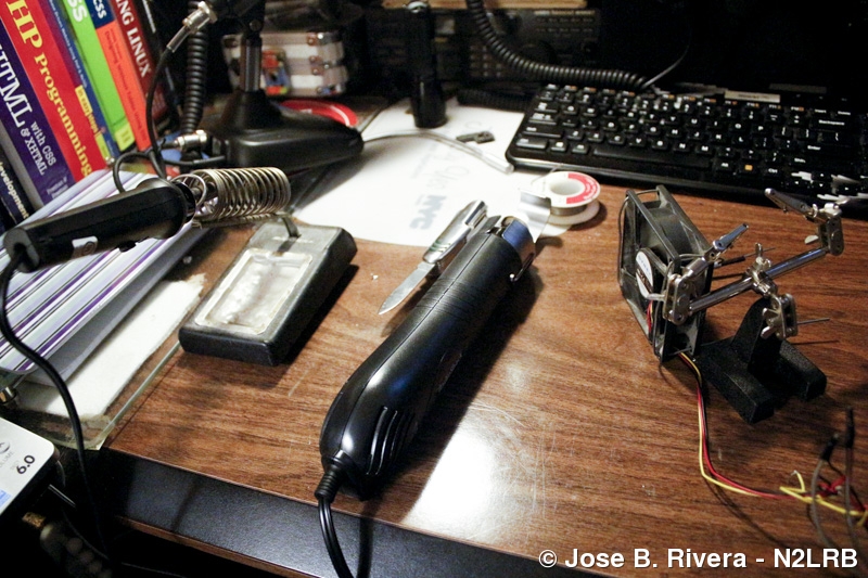 This is the set up I had to shrink the heat shrink and connect some wires after soldering. Photo taken on Mon, March 23, 2015