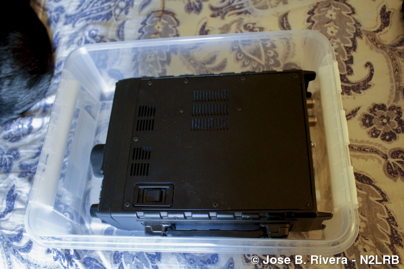 I purchased this plastic storage box to transport my Yaesu FT-897D. Photo taken on Sun, April 26, 2015