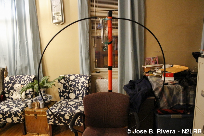 This is my large and first Magnetic Loop Antenna. It is over 5 feet in diameter. Which makes it hard to keep straight. But it is over 90% efficient, as oppose to the 3 foot loops sold commercially which are about 46% efficient. Photo taken on Sat, February 27, 2016